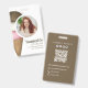 Faites une impression durable avec ce badge professionnel d'entreprise standard petite entreprise, avec un modèle photo moderne pour un look élégant et poli. Conçu pour les étiquettes de nom des employés de bureau de la société, ce badge comprend un code QR décontracté pour les connexions aux réseaux sociaux. Parfait pour un événement moderne, un festival ou une foire, il est idéal pour un magasin de cônes de crème glacée, un salon, un camion de traiteur, un traiteur ou un restaurant. Avec un élégant modèle de typographie chic, ce joli badge de sécurité d'identification de travail allie style et fonctionnalité.