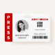 Appuyez sur l'ID de l'employé, le logo et le code-barres rouge modèle photo badge. Personnalisez ce badge de carte d'identité photo de journaliste avec votre nom, ID, titre, logo de l'entreprise et code à barres. Ajoutez des informations supplémentaires sur le dos.