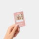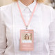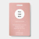 A chic and modern employee badge design for makeup artists and beauty professionals. This layout features a dusty rose background with leaf accents and elegant script typography. Perfect for salon owners, bridal makeup artists, and beauty consultants seeking a stylish, professional brand identity.