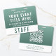 Create a calm, professional, and modern look with this large badge, designed for seamless identification and elevated event branding. Featuring a rich forest-to-sage green gradient, this badge offers a natural, refined aesthetic that stands out while remaining clean and easy to read. The layout clearly highlights your event title, staff name, and role, along with a bold “STAFF” (or VIP, VENDOR, CREW, etc.) designation for quick recognition. The reverse side includes a large scannable QR code, perfect for digital check-ins, schedules, credentials, or contact sharing -- making this badge both stylish and highly functional. Perfect for wellness retreats, yoga events, eco-friendly brands and sustainability conferences, outdoor festivals, nature-based gatherings, and corporate events seeking a softer, modern aesthetic.
