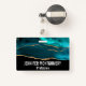 Nom badge avec un style abstrait. Illustration de la pierre d'agate turquoise avec des couches de nuances variées. Un faux ruban de parties scintillant d'or court entre les couches de couleur. Design moderne et élégant.