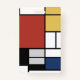 Composition avec Grand Plan rouge, Jaune, Noir, Gris et Bleu Piet Mondrian a commencé à créer les tableaux abstraits définitifs dans les années 1920 pour lesquels il est le plus connu. Il a gardé sa palette limitée au blanc, au noir et au gris en plus des trois couleurs primaires, le rouge, le jaune et le bleu. Ses compositions sont faites de lignes épaisses, noires, horizontales et verticales qui entourent les différents rectangles de couleur. C'était la simplification des éléments picturaux, essentielle à la création de Mondrian de nouvel art abstrait. L'assortiment de blocs de couleur et de lignes de largeur différente crée un sens du rythme qui coule à travers la toile, faisant écho à celui de la vie moderne. Cette pièce asymétrique, Composition avec Grand Plan rouge, Jaune, Noir, Gris et Bleu, peinte à l'origine en 1921, présente un grand bloc dominant de couleur, dans ce tableau rouge, un thème commun vu dans ses oeuvres ultérieures. Ceci est équilibré par la distribution des petits blocs de jaune, bleu-gris et blanc.
