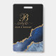 Une version unique d'un badge de métier de maquilleur en géode d'agate abstraite bleu noir et or métallisé avec une initiale en écriture élégante et une signature en script. Parfait pour les salons de beauté ou les conventions ainsi que dans votre boutique. Un style approprié pour d'autres professions pour un style chic.