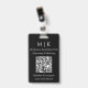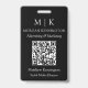 Insigne de nom minimaliste moderne. Noir & Blanc ou choisissez vos couleurs personnalisées. Ajoutez votre site Web ou votre adresse Web de médias sociaux au QR Scan Code. Parfait pour les petites entreprises, les marques d'entreprise, les indépendants, les salons de beauté, les spas, les traiteurs, les boulangeries, cafés, restaurants et plus encore. Facile à personnaliser avec vos initiales monographiques, nom et information d'entreprise, titre de poste, slogan, photo d'employé ou même ajouter votre logo ou votre marque personnelle.