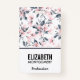 Nom badge avec un élégant motif fait avec une aquarelle illustration de fleurs roses avec feuilles et tiges bleu-gris.