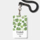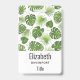 Badge nominatif personnalisé avec un joli motif composé de feuilles tropicales vertes. Design exotique et élégant.