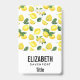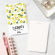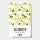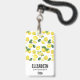 badge de nom personnalisé avec un mignon motif de citrons jaunes avec des feuilles verts et des tranches de citron fraîchement coupées.