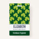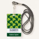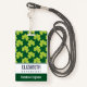badge de nom personnalisé avec un mignon motif répétitif de trèfle vert olive sur un arrière - plan vert foncé.