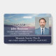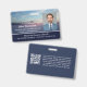 Church membership or clergy ID badge with a profile photo against a calm photo of the sun rising over a mountain skyline.