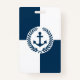 Nautical themed design with anchor and laurel wreath decoration over blue and white geometric background