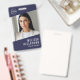 The back includes a dedicated space for your company’s return information, with the message: “If found, please return to [business address],” helping ensure the badge is returned if lost. The high-contrast navy and white layout, combined with minimal typography, keeps the design sharp and easy to read. This customizable badge is a practical and stylish option for any professional setting.