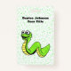 Ce nom ou badge d'identification est blanc avec des pois vert vif et un serpent vert néon souriant et jaune avec de grands yeux blancs. Customisez votre nom et vos informations aux modèles.