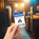 badge de visiteur vertical avec un design simple en bleu et blanc. VISITOR est écrit en caractères blancs gras contre un arrière - plan bleu pour être facilement visible. Ajoutez votre nom commercial, votre logo et votre succursale.