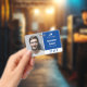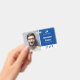 badge d'identification de l'employé avec un design épuré minimaliste en bleu, noir et blanc. Ajoutez une photo de l'employé avec le nom et la profession. Personnalisez davantage avec votre logo d'entreprise.