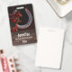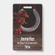 Un nom avec une photo montrant un fer à cheval suspendu orné d'un ruban en plastique de buffle et décorations de Noël.