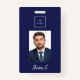 Arrière - plan bleu marine, texte blanc. Ajoutez le logo de votre entreprise, une photo et un nom Retour : pas de design.