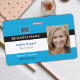 Personnalisez l'insigne Business Name avec Photo, Name, Logo et All Info ; plus l'endroit pour la numérisation à barres et les numéros sur le bleu, noir et blanc design.