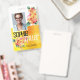 Faites une impression durable avec ce design moderne avec un design arrière - plan étonnant avec un dégradé jaune orange arrière - plan et rose sur elle. Customisez facilement ce badge à votre nom et ajoutez votre photo. -conçu avec la permission de Zaubershirts- www.zazzle.com/store/zaubershirts