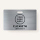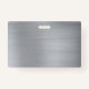 badge de nom moderne avec le logo de votre entreprise ou organisation contre un faux arrière - plan métallique en argent brossé. Ajoutez un nom et un titre dans une simple typographie.