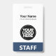 Personnalisez facilement ce badge de nom professionnel personnalisé sans photo, avec Scan Qr Code et logo d'entreprise. Un design d'entreprise simple en bleu marine et blanc entièrement personnalisable en tailles avant et arrière, sans-serif polices de base et moderne et un look professionnel et clair, parfait pour les employés de petite entreprise, patron, invités. Ces fournitures de badges d'identification d'entreprise sont disponibles avec cordon, clip métallique ou avec rétractable. Pas de commande minimum, mais économiser de l'argent et profiter de rabais Zazzle par plusieurs commandes!