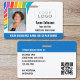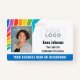 Créez votre propre badge d'identification coloré avec ce design amusant et convivial! Doté d'une vague vibrante de couleurs arc-en-ciel, il peut être personnalisé avec votre photo d'identité, nom, titre et logo. Au verso, vous avez la possibilité d'ajouter plus de détails et un code QR. Ajoutez simplement votre URL web et un code QR sera généré automatiquement. Tout le texte peut être customisé ou supprimé pour répondre à vos besoins. Ce modèle élégant est idéal pour de nombreux lieux de travail et professions, tels que les enseignants, le personnel éducatif, les infirmières, les postes de soins de santé, les employés de détail, les conférences, le personnel de campagne et plus encore. Couleurs imprimées : bleu, rose-violet, rouge, orange, jaune, vert, bleu-vert et blanc. Insigne d'orientation horizontale.