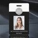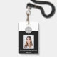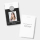 Ajoutez votre propre logo Professionnel Entreprise Nom de travail, Photo et Titre du travail Carte d'identité noir et blanc Photo Insigne commercial vertical. Cette conception est simple et facile à utiliser en changeant votre prénom et votre nom ainsi que votre titre de travail et votre plan de tête d'entreprise.