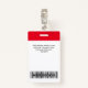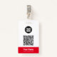 Personnalisez facilement ce badge de nom professionnel personnalisé sans photo, avec un modèle de code qr facile à copier et à coller, le code de la barre de numérisation et le logo d'une grande entreprise. Un design d'entreprise simple en rouge et blanc entièrement personnalisable en tailles avant et arrière, sans-serif polices de base et moderne et un look professionnel et clair, parfait pour les employés de petite entreprise, patron, invités. Ces fournitures de badges d'identification d'entreprise sont disponibles avec cordon, clip métallique ou avec rétractable. Pas de commande minimum, mais économiser de l'argent et profiter de rabais Zazzle par plusieurs commandes!