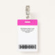 Personnalisez facilement ce badge de nom professionnel personnalisé sans photo, avec un modèle de code qr facile à copier et à coller, le code de la barre de numérisation et le logo d'une grande entreprise. Un design d'entreprise simple dans les couleurs rose et blanc néon entièrement personnalisable en tailles avant et arrière, sans-serif polices de base et moderne et un look professionnel et clair, parfait pour les employés de petite entreprise, patron, invités. Ces fournitures de badges d'identification d'entreprise sont disponibles avec cordon, clip métallique ou avec rétractable. Pas de commande minimum, mais économiser de l'argent et profiter de rabais Zazzle par plusieurs commandes!