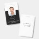 Ajoutez votre propre logo Professionnel Entreprise Nom de travail, Photo et Titre du travail Carte d'identité noir et blanc Photo Insigne commercial vertical. Cette conception est simple et facile à utiliser en changeant votre prénom et votre nom ainsi que votre titre de travail et votre plan de tête d'entreprise.