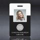 Ajoutez votre propre logo Professionnel Entreprise Nom de travail, Photo et Titre du travail Carte d'identité noir et blanc Photo Insigne commercial vertical. Cette conception est simple et facile à utiliser en changeant votre prénom et votre nom ainsi que votre titre de travail et votre plan de tête d'entreprise.