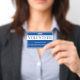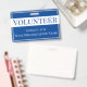 Ce badge d'identification d'un bénévole comporte un arrière - plan bleu solide. Le titre "Volontaire" est imprimé sur une bannière blanche en bleu afin que le titre soit facilement visible. Vous pouvez personnaliser le badge d'identification pour inclure votre propre nom d'entreprise ou d'organisation ou tout autre texte personnalisé.