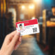Badge Nom d'employé personnalisé Photo et code QR rouge