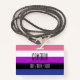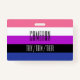 L'arrière - plan est le drapeau de la fierté des gens qui aiment les femmes. C'est un motif rayé de rose, blanc, violet, noir et bleu. Il y a de l'espace pour un nom et des pronouns personnalisés.