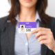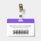 Personnalisez facilement cette Lavande horizontale personnalisée violet de l'ID d'employé de l'entreprise Nom Badge avec Photo, Code de la barre d'analyse ou code Qr et logo de l'entreprise. Un design d'entreprise simple dans des couleurs vives, violet et blanc néon violet et blanc entièrement personnalisable, vous pouvez choisir n'importe quelle couleur arrière - plan dans les tailles avant et arrière, sans-serif polices de base et moderne et un look professionnel et clair. Ces badges d'identification de sécurité standard sont disponibles avec cordon, clip métallique ou avec rétractable. Vous pouvez personnaliser vos cartes d'identification en choisissant n'importe quelle couleur arrière - plan et n'importe quel style de police avec l'éditeur Graphic Design en cliquant sur customiser plus loin. Pas de commande minimum.