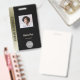 Un design d'entreprise élégant, noir et or, entièrement personnalisable, avant et arrière. Professionnel, élégant, élégant, élégant, il dispose d'un motif art déco de rectangles (numériquement) recouverts d'or. Personnalisez ce badge personnalisé de nom d'employé avec une photo, code à barres d'analyse et le logo de l'entreprise. Pour : l'industrie de gestion immobilière, droit, finance, comptabilité, entreprise. Disponible avec cordon, clip métallique ou avec rétractable. Pas de commande minimum.