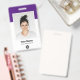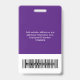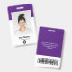 Personnalisez facilement ce badge personnalisé de nom d'employé avec photo, code de barre d'analyse et logo d'entreprise. Un design d'entreprise simple en violet et blanc entièrement personnalisable en tailles avant et arrière, sans-serif polices de base et moderne et un look professionnel et clair. Disponible avec cordon, clip métallique ou avec rétractable. Pas de commande minimum.