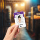 Badge Nom du logo de l'employé grand photo violet