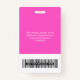 Personnalisez facilement ce badge personnalisé de nom d'employé avec photo, code de barre d'analyse et logo d'entreprise. Un design d'entreprise simple dans des couleurs roses et blanches mignonnes et joliment fuchsia entièrement personnalisable en tailles avant et arrière, sans-serif polices de base et moderne et un look professionnel et clair. Disponible avec cordon, clip métallique ou avec rétractable. Pas de commande minimum.