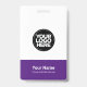 Personnalisez facilement ce badge de nom professionnel personnalisé sans photo, avec le code de la barre de numérisation et le logo d'une grande entreprise. Un design d'entreprise simple dans des couleurs violettes et blanches stylisées entièrement personnalisables en tailles avant et arrière, sans-serif polices de base et moderne et un look professionnel et clair, parfait pour les employés de petite entreprise, patron, invités. Ces fournitures de badges d'identification d'entreprise sont disponibles avec cordon, clip métallique ou avec rétractable. Pas de commande minimum, mais économiser de l'argent et profiter de rabais Zazzle par plusieurs commandes!