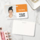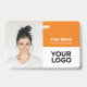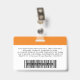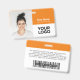 Personnalisez facilement ce badge personnalisé de nom d'employé avec photo, code à barres d'analyse et logo de l'entreprise, avec nom de personne, profession, code à barres d'identité optionnel, avec clip métallique inclus. Un badge de marque utile pour identifier le personnel, les visiteurs ou les invités. Un design d'entreprise simple avec une grande photo en boho orange vif et blanc entièrement personnalisable en tailles avant et arrière, dans n'importe quelle couleur arrière - plan, sans-serif polices de base et moderne et un look professionnel et clair. Un outil utile pour les événements d'entreprise, les réunions, les nouvelles et les célébrations. Créez plus de carte d'identification de badge photo d'entreprise en différentes couleurs pour toute catégorie que vous devez identifier : personnel, visiteurs ou invités. Disponible avec ou sans nacelle, clip métallique ou avec rétractable. Pas de commande minimum.
