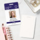 Un badge d'identité personnel minimaliste et moderne avec logo d'entreprise, photo et détails. Personnalisez avec votre logo, votre photo et vos détails pour créer votre propre badge d'affaires blanc élégant et unique.
