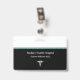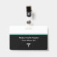 Les insignes de nom médical professionnel modernes en couleurs turquoises et noires pour un aspect professionnel conçu avec un symbole de cathétrie et un espace de nom pour le nom de votre établissement de soins de santé et le nom du membre du personnel dans un design économique que vous pouvez customiser en ligne. Créé pour les employés d'un hôpital, d'un cabinet de médecins, d'un laboratoire médical ou d'un service médical d'urgence.