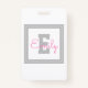 Badge Nom et monogramme encadrés | Gris clair et rose