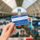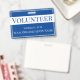 Ce badge d'identification pour un bénévole présente un fond bleu uni. Le titre "Bénévole" est imprimé sur une bannière blanche en texte bleu afin que le titre soit facilement visible. Vous pouvez personnaliser le badge d'identification pour inclure le nom de votre entreprise ou organisation ou tout autre texte personnalisé.