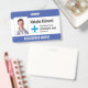 Nom de la photo de l'employé de l'hôpital Logo Code de la barre Bleu et Blanc Badge. Pour plus de personnalisation, cliquez sur le bouton "Customiser" et utilisez notre outil de conception pour modifier ce modèle.