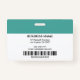 Personnalisez l'insigne Business Name avec Photo, Nom, Logo et Toutes les informations ; plus l'endroit pour la numérisation de barres et les numéros sur le design turquoise et blanc.