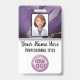 Offrez-vous un badge d'identification personnalisé, conçu pour les infirmières, les médecins et le personnel médical. L'avant présente un design d'encre d'alcool mauve et dorée, avec un cadre photo, un nom et un titre dans un élégant script et des polices de blocs, ainsi que de l'espace pour votre logo d'entreprise. Le dos comprend un QR ou un modèle de code à barres, l'adresse de retour et l'arrière - plan en marbre correspondant. Parfait pour les infirmières en déplacement ou les professionnels de la santé avec style.