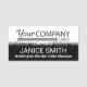 Badge nominatif noir et blanc avec logo