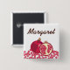 Bouton ou insigne rouge d'étiquette de nom de grenade pour les chefs personnels ou privés, le personnel servant, le traiteur ou la restauration, les boulangers et d'autre cuisine ou affaires de cuisson. Poms rouges entiers et découpés en tranches de framboise ronde avec les graines rondes.