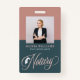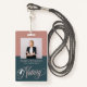Badge d'identification de l'agent de signature de prêt notaire moderne. Le design comprend une photo, un script de typographie "Notaire" et un nom sur l'avant, les coordonnées et le code qr sur l'arrière.